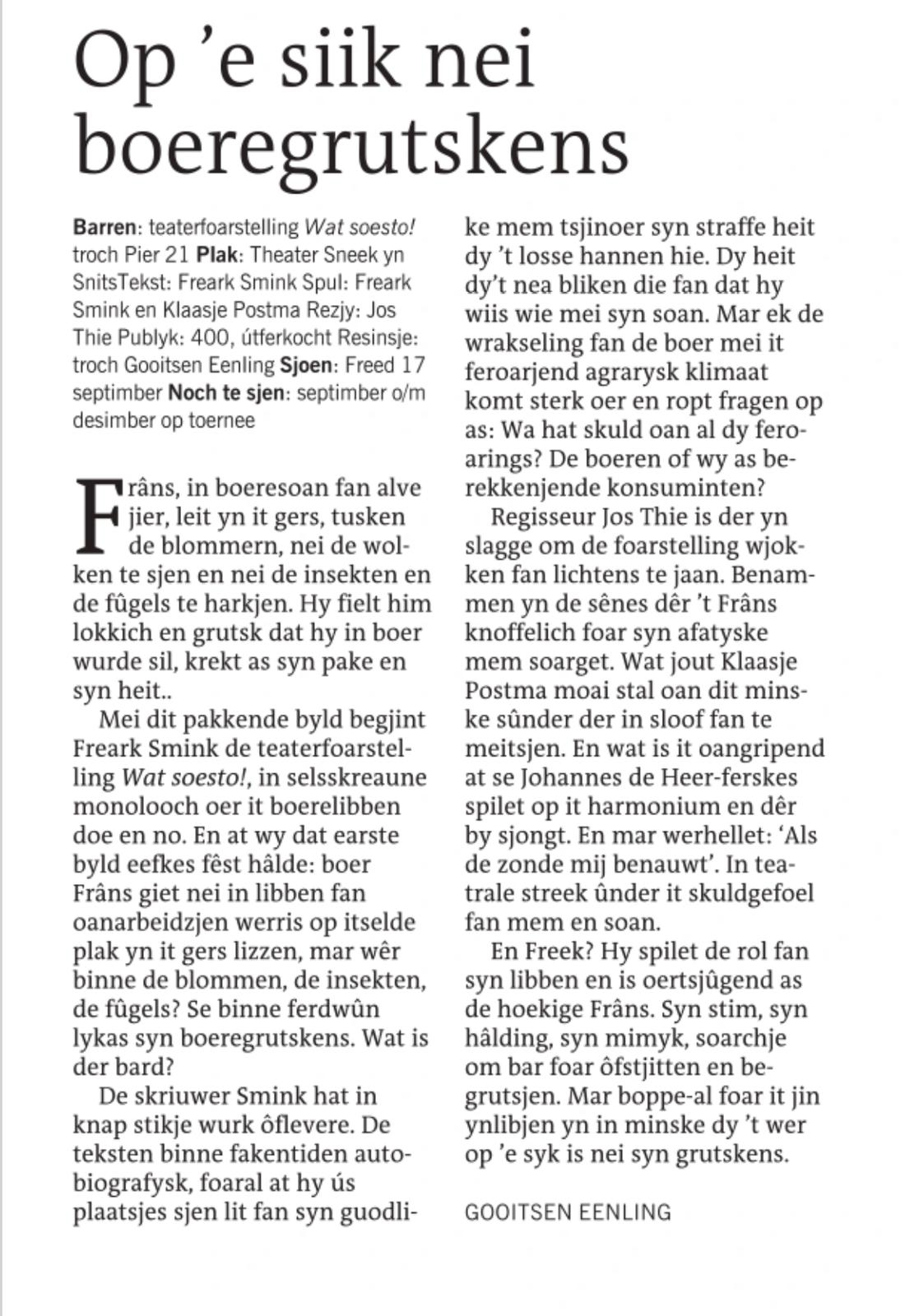 Afgelopen vrijdag ging Wat Soesto! in premiere. Wij zijn beloond met prachtige recensies, wij zijn trots!