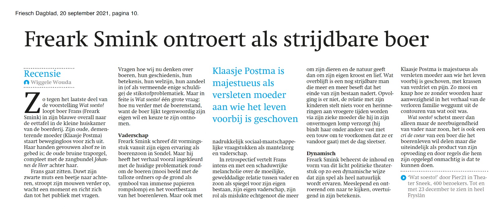 Afgelopen vrijdag ging Wat Soesto! in premiere. Wij zijn beloond met prachtige recensies, wij zijn trots!